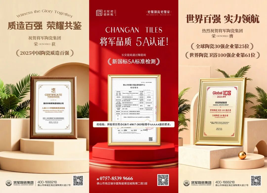 而在2025年5月以来,长安瓷砖还陆续获得“大理石瓷砖十大品牌”、“广东制造佛山品牌”、“广东砖推荐十大品牌”等荣誉,展现长安以品质和服务赢得了用户、行业、社会的全面认可。