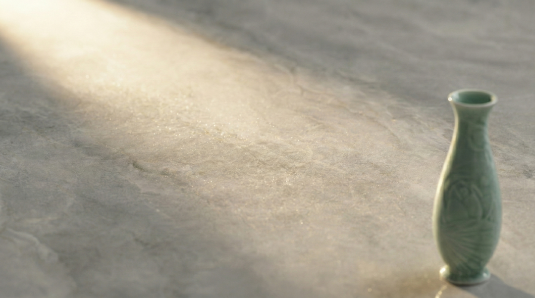 在超白坯的基底上,这种灰色显得尤为干净、通透。纹理如同被水流轻柔冲刷过的细沙,均匀而细腻;又似宣纸上极淡的墨痕,以最朴素的姿态,营造出安宁、放松的空间氛围。